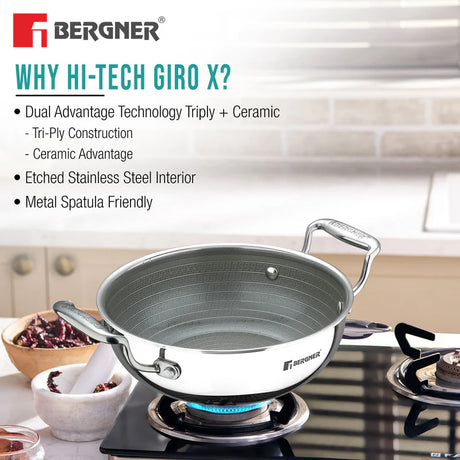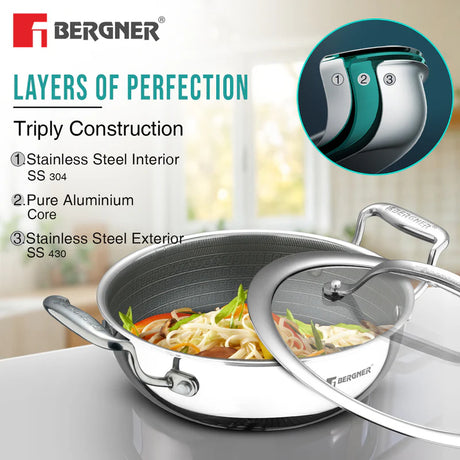 Tramontina Aeion 40cm Triply Deep Kadai with SS Lid