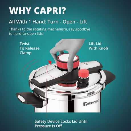 Capri Tri-Ply Pressure Cooker with Low and High Pressure Settings, Safety Lock BGIN-0620