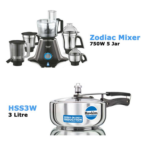 Preethi Mixer Grinder Zodiac 750W 5 Jar & Hawkins Stainless Steel Pressure Cooker 3 L: HSS3W