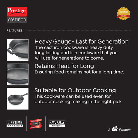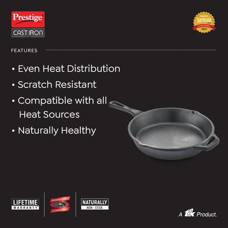 Prestige Cast Iron Scratch Resistant Gas and Induction Compatible Fry Pan, 25cm (Black) 30559