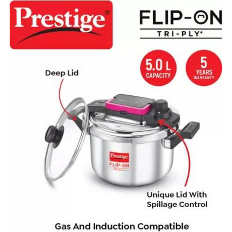 PRESTIGE 5 LITRE FLIP-ON TRI PLY SVACHH PRESSURE COOKERs (20709)