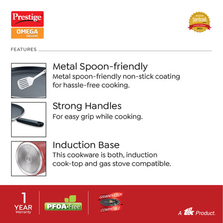 Prestige Omega Deluxe Aluminium Induction Base Non-Stick Omni Tawa, 28 cm (Red) 36718