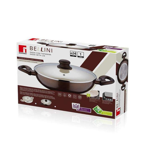 Bergner Bellini Aluminium Kadai with Lid, 24cmx7cm Multicolour