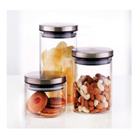 Borosil Classic Glass Jar With Lid Set (3-Pieces)