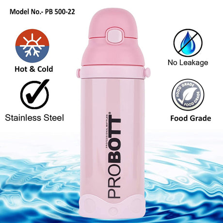 PROBOTT Thermosteel Vacuum Flask with Belt 500ml -Pink PB 500-22