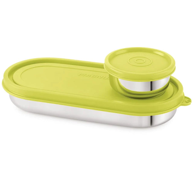 Magnus Easy Lock Stainless Steel Prime Oval & Chocolate Container Set – Airtight & Leakproof Tiffin for School, Office, Picnic | Lunch Box for Men, Women & Kids (Green, 100ml & 450ml)