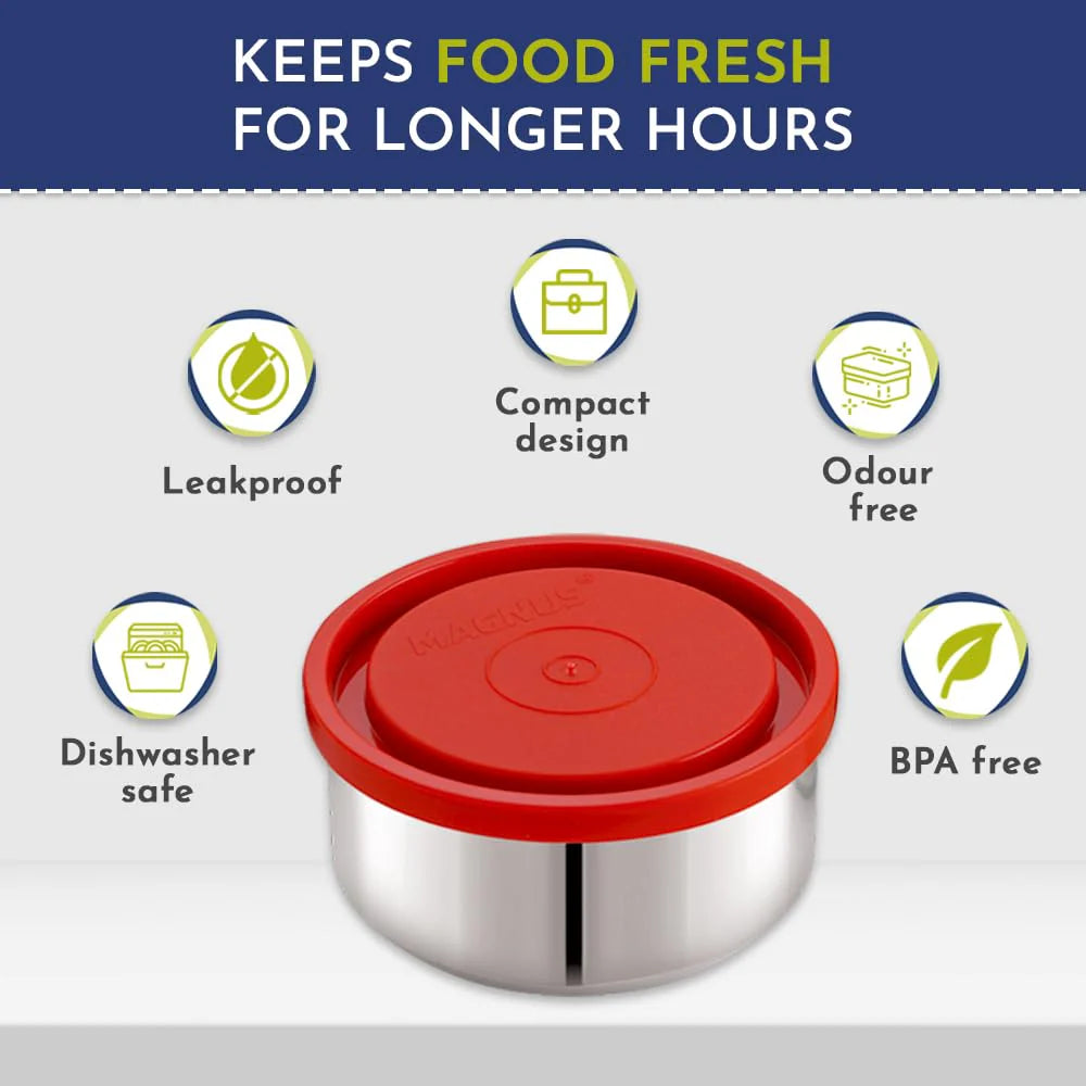 The Magnus Fancy 3 Prime Steel Lunch Box Set is an all-in-one solution for your meal storage needs, whether you're looking for a tiffin box for office men, a lunch box for office women, or a school lunch box for kids. With its superior quality, leak-proof design, and stylish appearance, this lunch box is the best choice for anyone seeking a reliable and attractive lunch box for daily use.