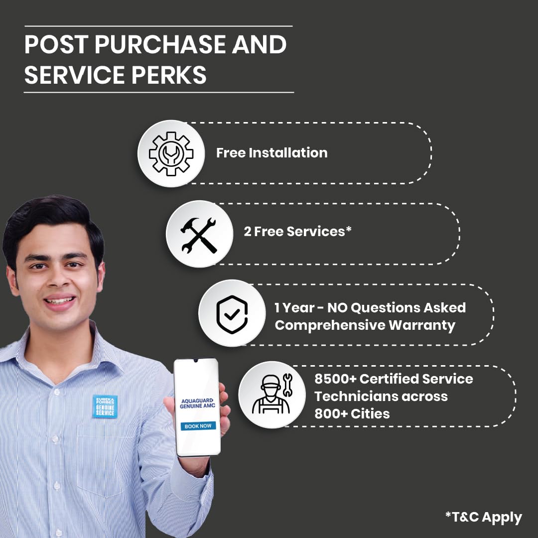The Aquaguard Superio RO+UV Water Purifier is engineered to provide high-purity, mineral-enriched drinking water for all types of households. With patented Active Copper Technology, it infuses water with the right amount of copper for enhanced immunity and better health. The purifier also features a durable Stainless Steel Tank, ensuring long-lasting hygiene and protection against bacterial growth. Its RO+UV purification system efficiently removes harmful contaminants, dissolved salts, chemicals, and microbes—making it suitable for water from borewell, tanker, or municipal sources. With free installation and two complimentary services, the Superio delivers convenience, purity, and value.