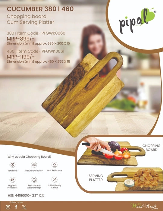 Pipal Cucumber Acacia Wood Chopping Board / Serving Platter  460mm