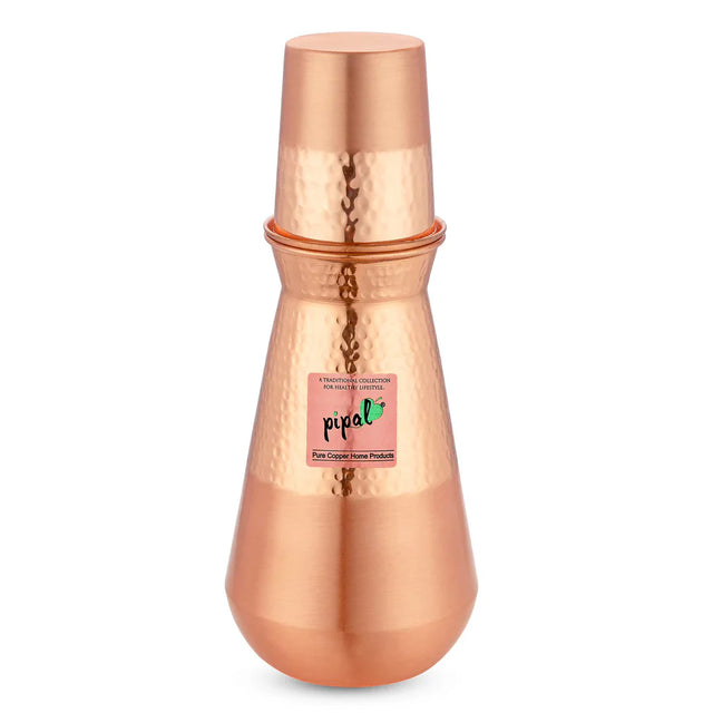 The Pipal Kumbh Copper Carafe (950ml) is a perfect balance of traditional wellness and artisanal craftsmanship. Handcrafted from pure copper, it promotes natural health benefits and effective water purification while adding timeless elegance to your home. Inspired by the classic kumbh shape, this carafe is both functional and decorative, making it ideal for bedside use, dining, or entertaining guests. With its polished finish and ergonomic form, it is as practical as it is stylish, and also makes for a thoughtful gift.