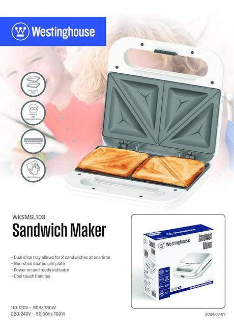 RST750SW 750 Watt Non-Stick Crispy Sandwich Toaster for Multi-Snacks with Fixed Plates