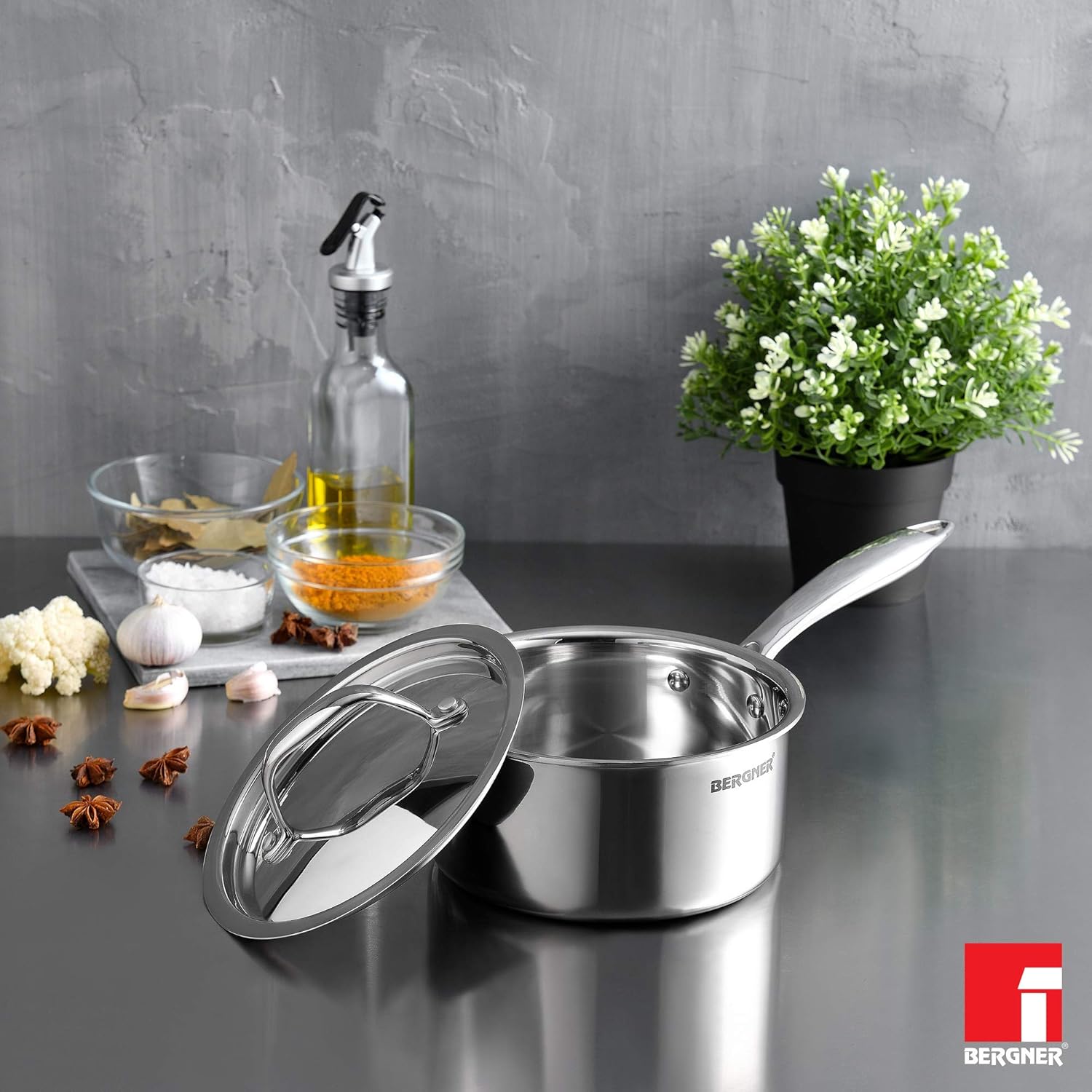 Bergner BERGNER ARGENT TRIPLY SAUCEPAN WITH LID STAINLESS STEEL 18cm, 2.2Ltr, Silver