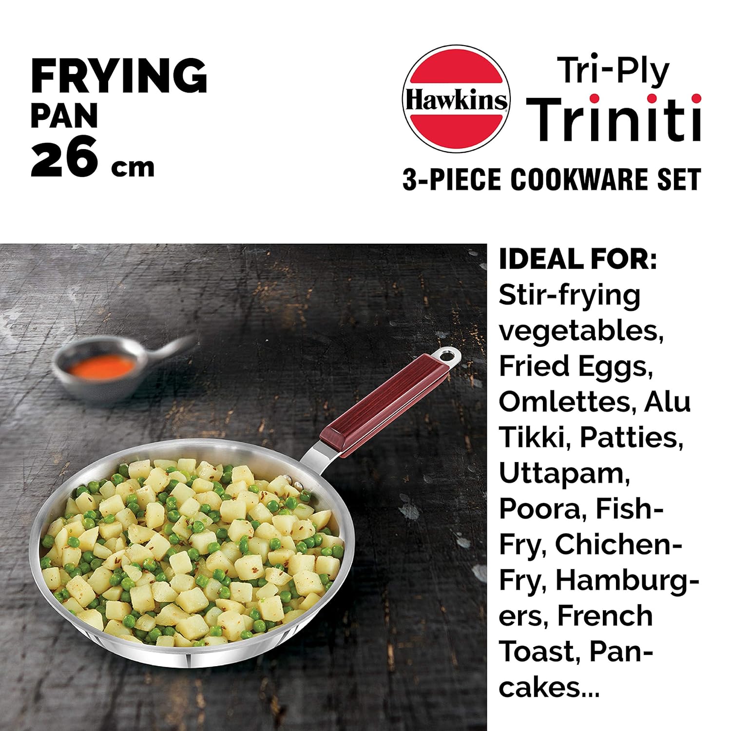 Hawkins Tri-Ply Stainless Steel Frying Pan, 26 cm (SSF26)
