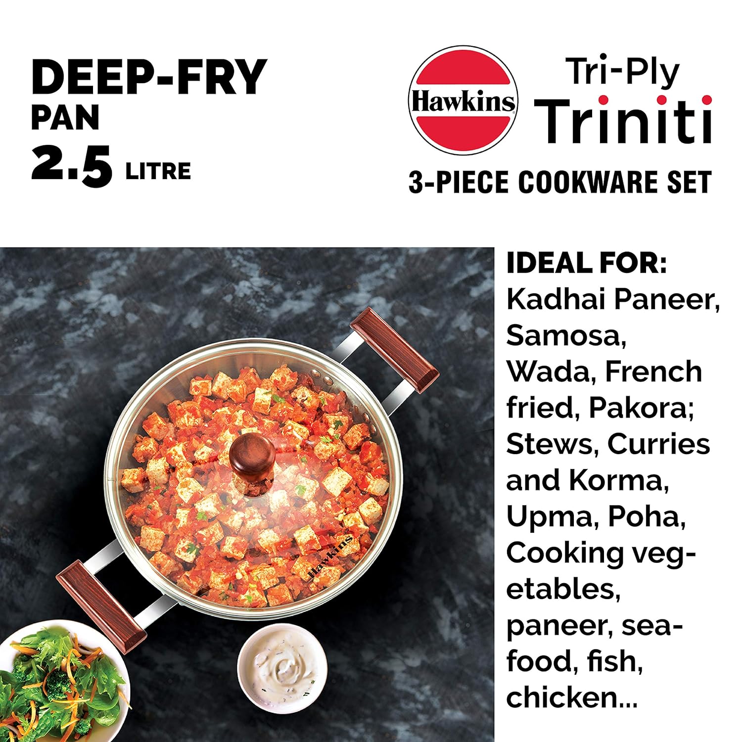 Hawkins Tri-Ply Stainless Steel Deep-Fry Pan, 2.5 Litre (SSD25)