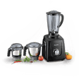 It has a powerful 1000 watts motor with double ball-bearings ( for both ends of the motor ) providing long life along with trouble free performance. Its 25,000 R.P.M. operation processes the food in short time with little heat generation that helps retain the natural flavours of the food. The self-aligning jars & motors have been provided for enhanced safety. The bush in the precision engineered cutter assemblies for mixer and grinder are pre-loaded with oiled felt for longer life. The cutter blades are made of high tensile stainless steel and machined in exact shape at precise angles for high performance. The model comes with three jars attachments: –