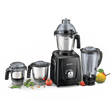 It has a powerful 1000 watts motor with double ball-bearings ( for both ends of the motor ) providing long life along with trouble free performance. Its 25,000 R.P.M. operation processes the food in short time with little heat generation that helps retain the natural flavours of the food. The self-aligning jars & motors have been provided for enhanced safety. The bush in the precision engineered cutter assemblies for mixer and grinder are pre-loaded with oiled felt for longer life. The cutter blades are made of high tensile stainless steel and machined in exact shape at precise angles for high performance. The model comes with four jars attachments: –