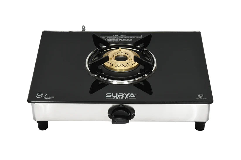 The Surya Accent 1B UNO GT SS (Jumbo) is a single-burner cooktop tailored for kitchens where space is limited but performance cannot be compromised. Built with a stainless-steel finish, it combines a sleek design with rugged durability. The “UNO” model emphasizes simplicity and efficiency, while the “GT” designation implies a high-output burner for stronger flame delivery. Its “Jumbo” burner ensures faster heating, making it ideal for frequently used or large cookware.