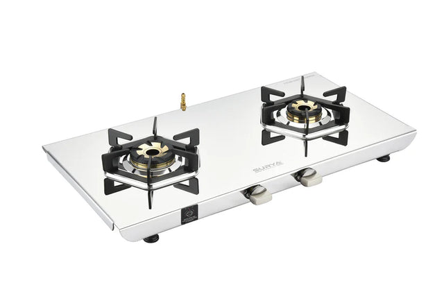 The Surya Accent 2B Victor SS DT 3D Twirl Burner is a compact and powerful two-burner cooktop engineered for kitchens where space is limited but performance can’t be compromised. With its stainless steel (SS) top and an integrated drip tray (DT), it offers easy maintenance and a modern, durable look. The standout feature is the “3D Twirl” burner design, which is meant to provide efficient and evenly-distributed flame, helping improve cooking speed and performance.