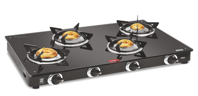 The Vidiem VERA 4‑Burner Gas Stove is crafted for kitchens that demand both style and high performance. With four brass burners (two small, one medium, one jumbo) it makes multi-dish cooking simple and efficient.