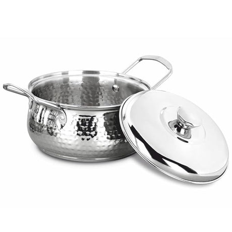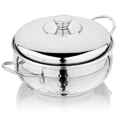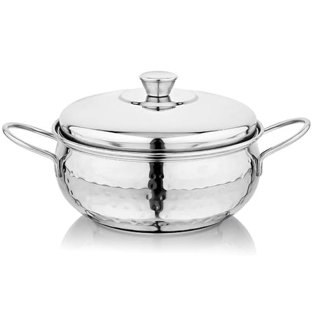 Stainless Steel Milano Hammered Serving Casserole with Steel Lid & Side Handle – 16 cm