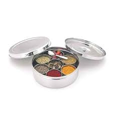 Stainless Steel Masala Dabba / Spice Box, 7 Containers with Spoon & Steel Lid – 6.5 Inch, No.10