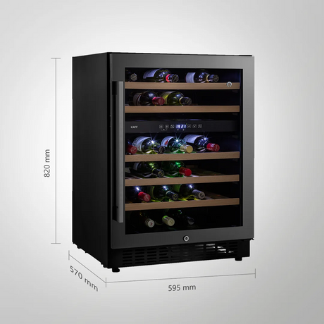 Undercounter Wine Cooler – Dual Zone, 43-Bottle Capacity, Black Glass Finish - 5WK 830FF0