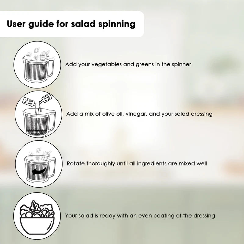 | Tasty Salad | Can be used to toss leafy vegetables, vinegar, olive oil, and dressing together for fresh, crisp salads. |