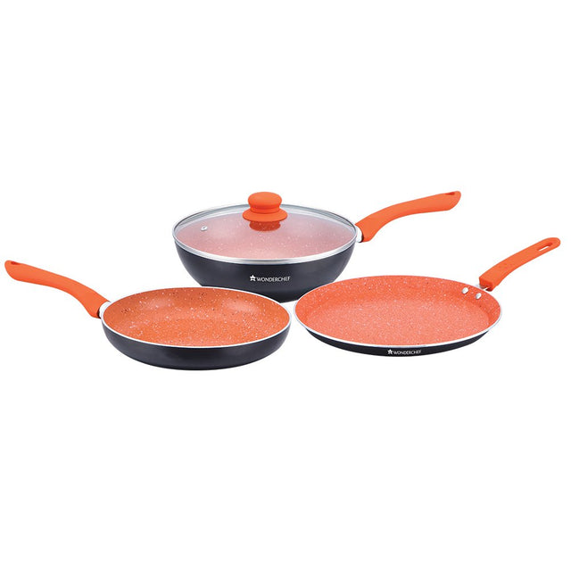 Wonderchef Sakura Aluminium Induction Base Cookware Set, Set of 3-Pieces with lid