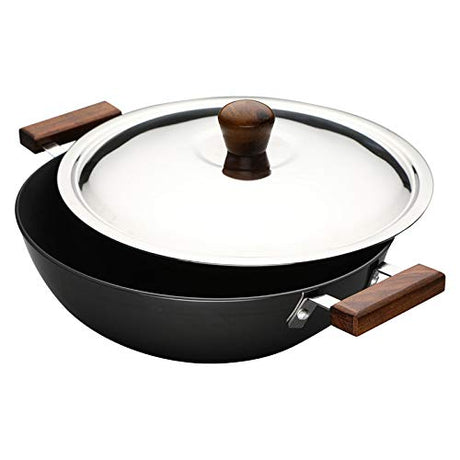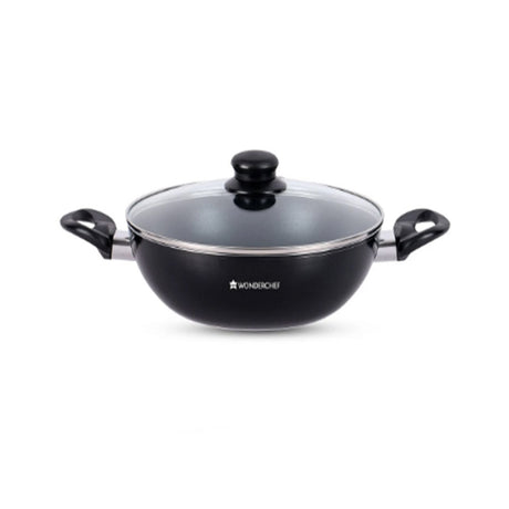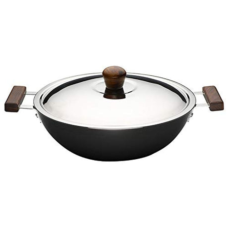 Wonderchef 28cm Hard Anodized Aluminium Wok with Lid