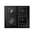A stunning four-burner hob featuring electric spoke spark ignition, easily controllable with one hand. Compatible with both LPG and natural gas, these brass burners empower you to cook any delicacy like a pro!