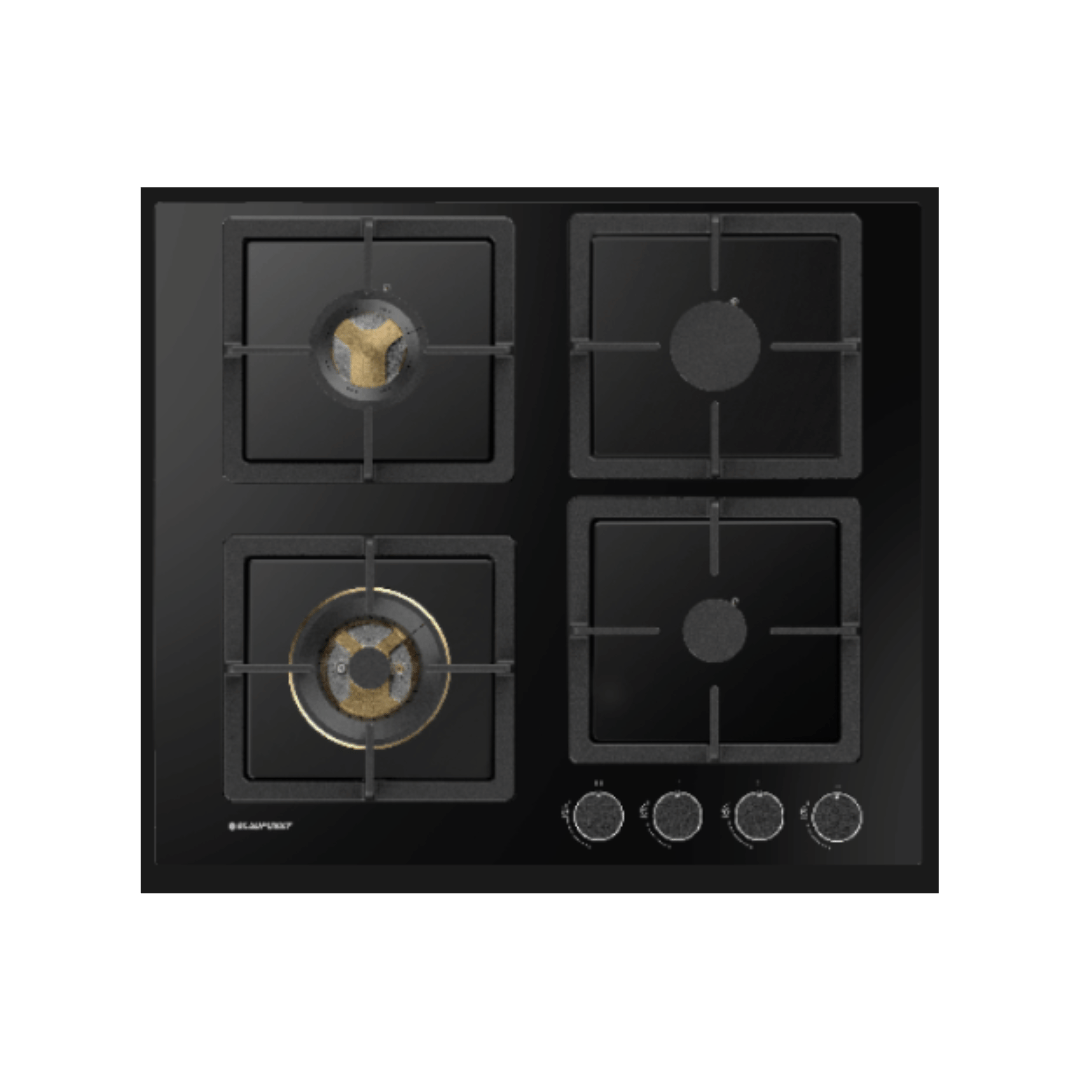 Blaupunkt By Hettich Gas Hob, 5GH 65BB490, 4 Full Brass Burner Auto Ignition, Cast Iron Pan Supports, Flame Failure Safety Device