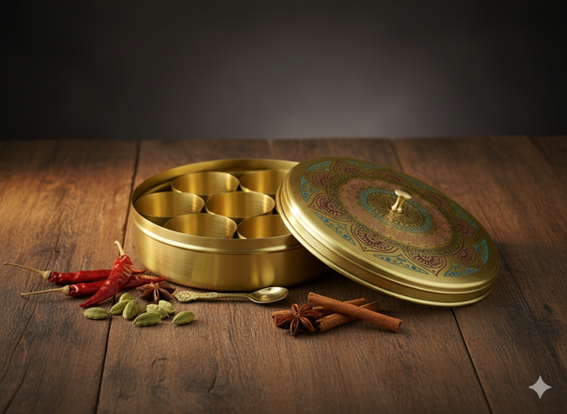 Traditional Spice Box (Masaladan): A classic container for storing seven different essential kitchen spices.