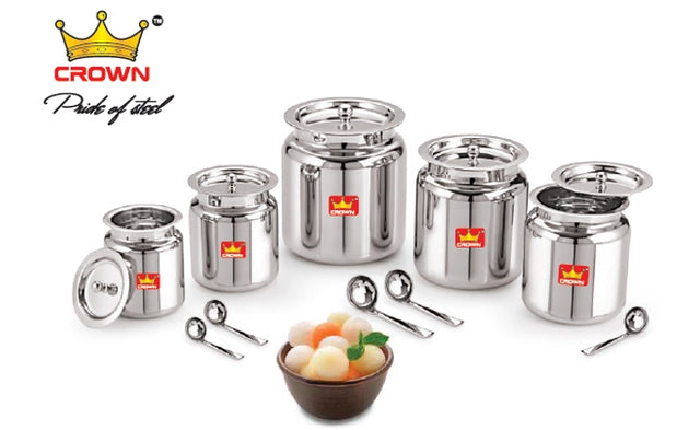 Crown Maslo Ghee Pot with Spoon – Pure Salem Steel Container