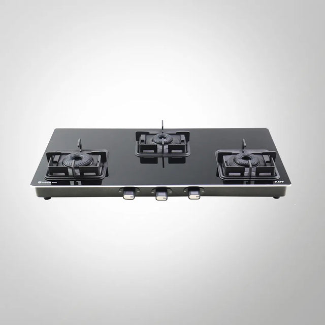 KAFF CTQ 77 3B 77cm 3 Burner Manual Ignition Cooktop with Black Tempered Glass & Brass Burners