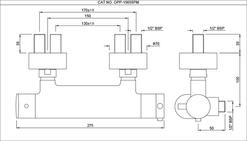 | Configuration | Wall-mounted exposed shower mixer with thermostatic temperature control for consistent and safe water temperature. |