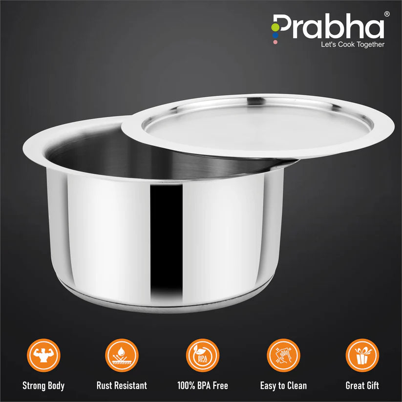 The Prabha Grace IB Tope With Lid (5.3L, 24cm) is a compact and durable cookware piece, perfect for everyday kitchen use. Its inner-bottom (IB) construction ensures even heat distribution, making it energy-efficient and ideal for preparing a variety of dishes. With a 5.3L capacity and 24cm diameter, it is best suited for boiling, heating, or cooking small portions. The included lid helps retain heat and nutrients, ensuring healthy and flavorful results.