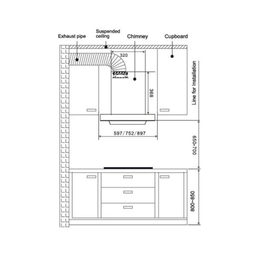 60cm Wall Mounted Filter-Free Hood with T-Shape Design