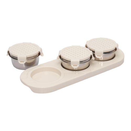 Jaypee plus Jaypee plus ZETA-3 Airtight Inner Stainless Steel Dry Fruit Container Set of 3 with Tray 3N - 350 ml IVORY