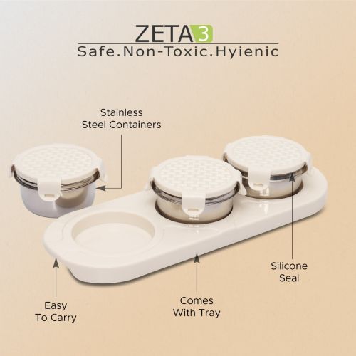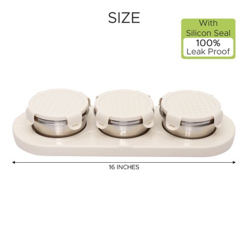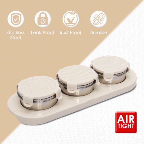 Jaypee plus ZETA-3 Airtight Inner Stainless Steel Dry Fruit Container Set of 3 with Tray 3N - 350 ml IVORY