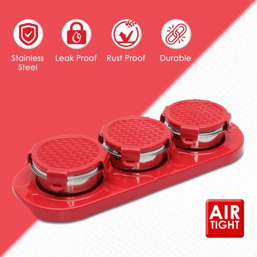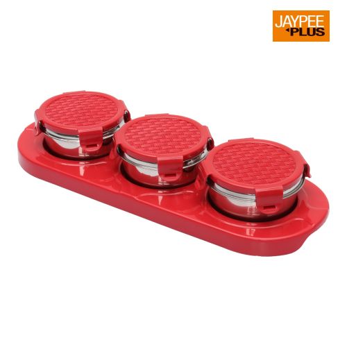 Jaypee plus Jaypee plus ZETA-3 Airtight Inner Stainless Steel Dry Fruit Container Set of 3 with Tray 3N - 350 ml Red