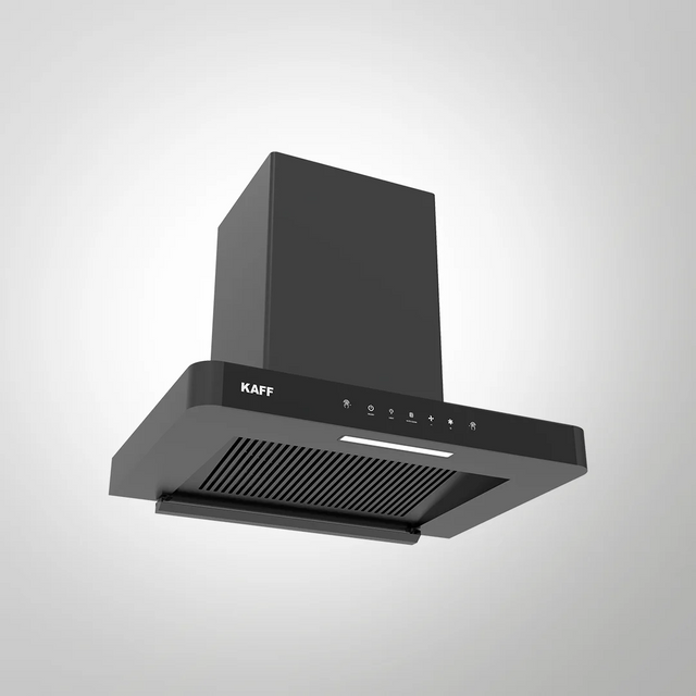 The KAFF R-PRO 60 Kitchen Chimney is a sleek and high-performance wall-mounted chimney designed to enhance kitchen ventilation with advanced smoke and odor extraction. Featuring a T-shaped design with a matte black finish, it blends seamlessly into modern kitchens while ensuring powerful suction.