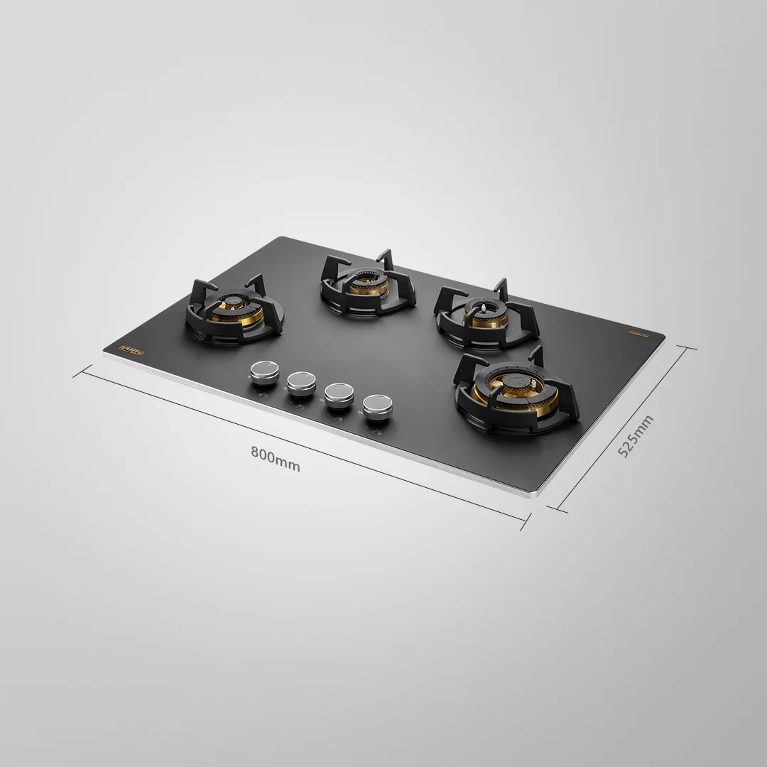 Featuring an 8mm thick premium frosted black glass surface, the hob adds a sleek, modern look to your kitchen while ensuring durability. The decorative stainless steel molded strip provides edge protection, while the full flame failure device (FFD) enhances safety by automatically cutting off the gas supply in case of flame failure.