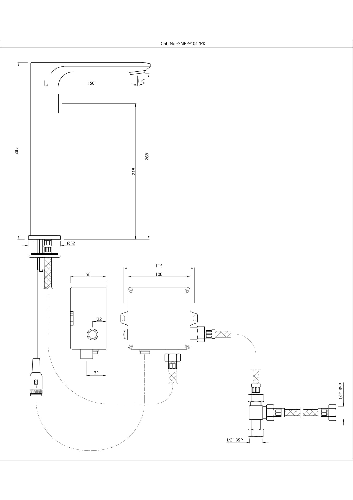 The Jaquar Laguna Tall Boy Sensor Faucet SNR‑CHR‑91017PK is a premium, high-neck sensor‐activated wash basin faucet designed for modern bathrooms prioritizing both hygiene and aesthetics. With its tall-boy profile, it offers additional clearance and a sophisticated presence—perfect for vessel basins or elevated installations.