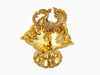 This Brass Peacock Diya is an elegant and traditional lamp designed to enhance the spiritual ambiance of your home, temple, or festive celebrations. Expertly handcrafted from high-quality brass, it features a beautifully detailed peacock design perched above the diya, symbolizing beauty, prosperity, and grace. The broad petal-shaped diya base provides ample space for holding oil and wicks, ensuring a steady flame during prayers and rituals. With its intricate carvings and lustrous finish, this diya not only serves as a sacred lamp but also as a decorative centerpiece for special occasions and gifting.