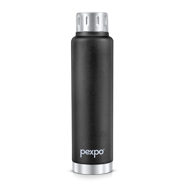 Pexpo Pexpo Cameo ISI Certified Vacuum Insulated 500ml Stainless Steel Water Bottle - Black | Hot & Cold Upto 6-8 Hours | Leak Proof | Office, School, Gym, & Travelling|Men, Women & Kids
