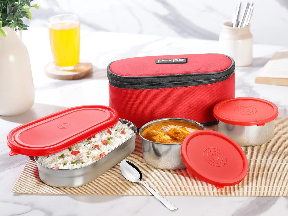 Pexpo Pexpo Delight Steel Lunch Box 400 ML Red
