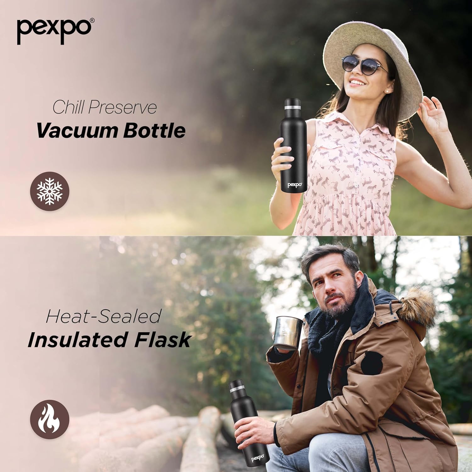 Pexpo Stainless Steel Hot and Cold Vacuum Insulated ISI Certified Flask,750ml, Black, | Double Wall Flask | BPA Free | Office | School | Home | Hiking | Gym