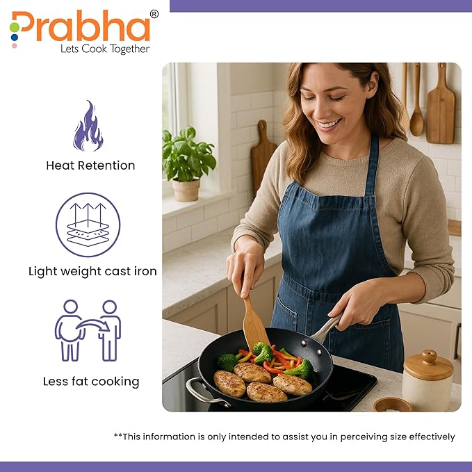 The Prabha Black Eisen Cast Iron Wok With Steel Handle is a traditional, durable cookware piece designed for authentic Indian cooking. Crafted from premium pre-seasoned cast iron, this wok offers excellent heat retention and uniform cooking, making it ideal for stir-frying, deep-frying, sautéing, and preparing curries. The sturdy stainless-steel handle ensures a safe, comfortable grip while handling high temperatures. Over time, the cast iron surface develops a natural non-stick layer that enhances flavor and reduces the need for excess oil, offering healthy and delicious meals every time.