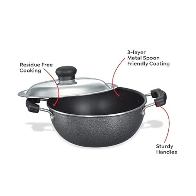 Prestige Prestige 27 cm Omega Select Plus Aluminium Flat Base Non Stick Coating Kadai with SS Lid (30728)