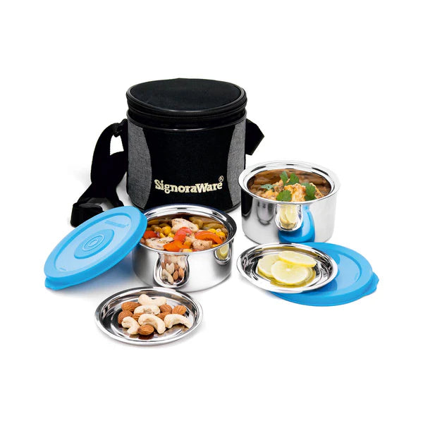 Signoraware Executive Twin Wall Small Steel Lunch Box Color: Red, Blue